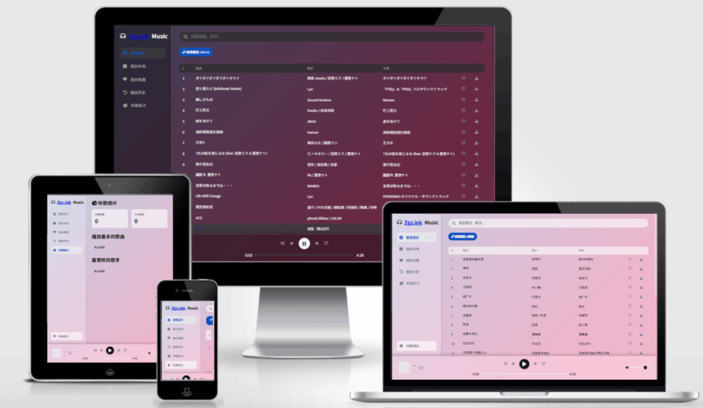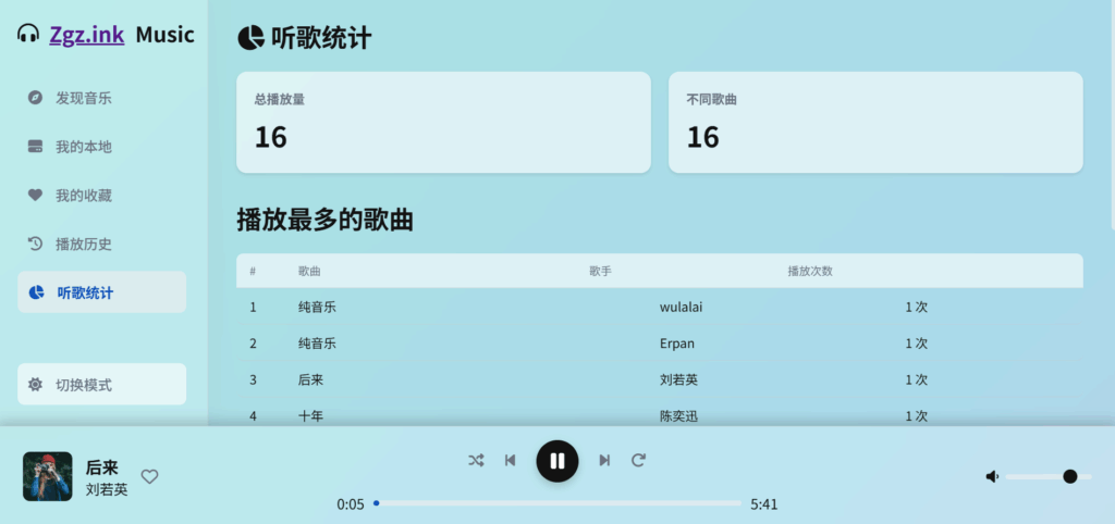 功能:随机列表,播放,下载,本地导入,试听统计,搜藏等